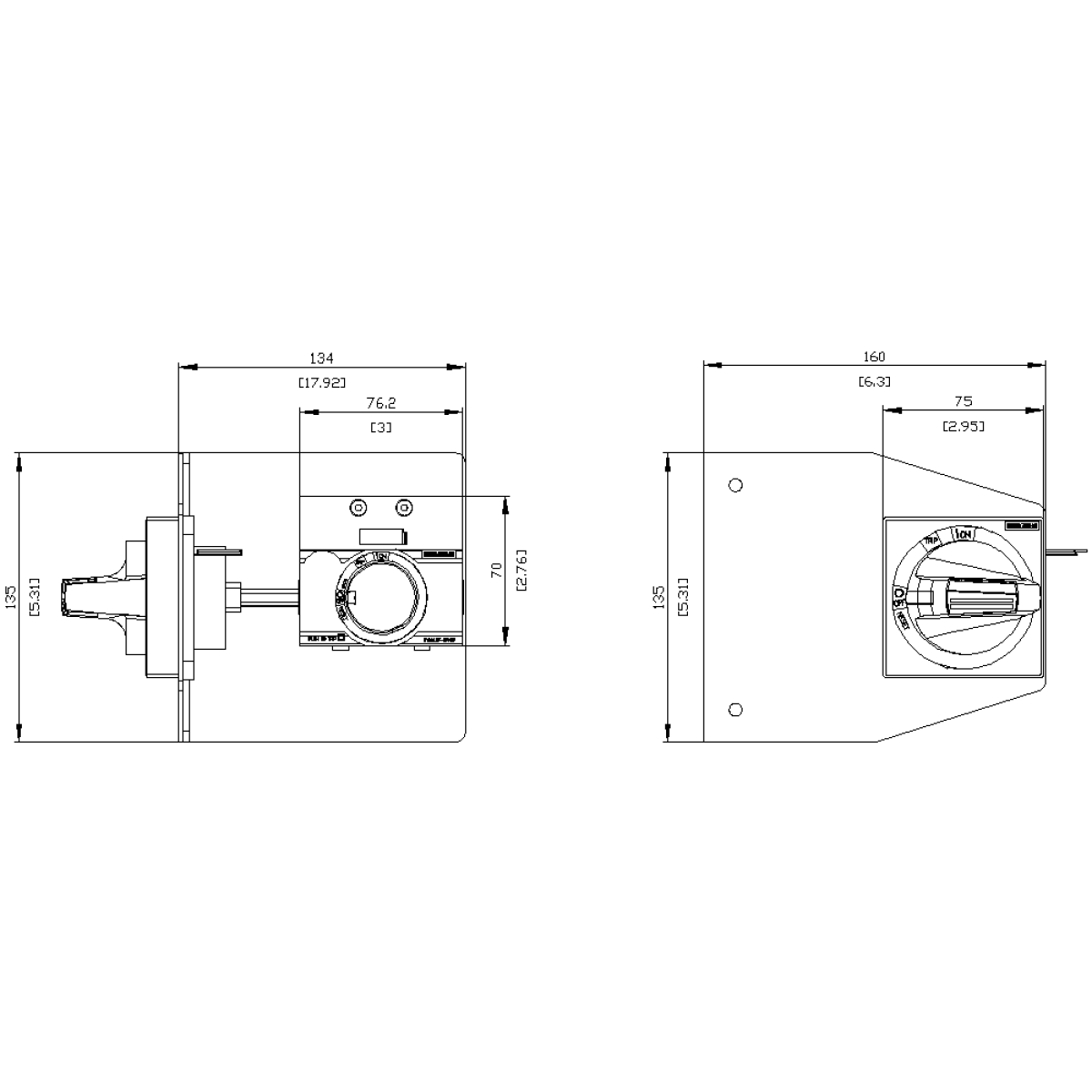 Side wall mounted rotary operator EMERG.-STOP IEC IP65 with mounting bracket ...