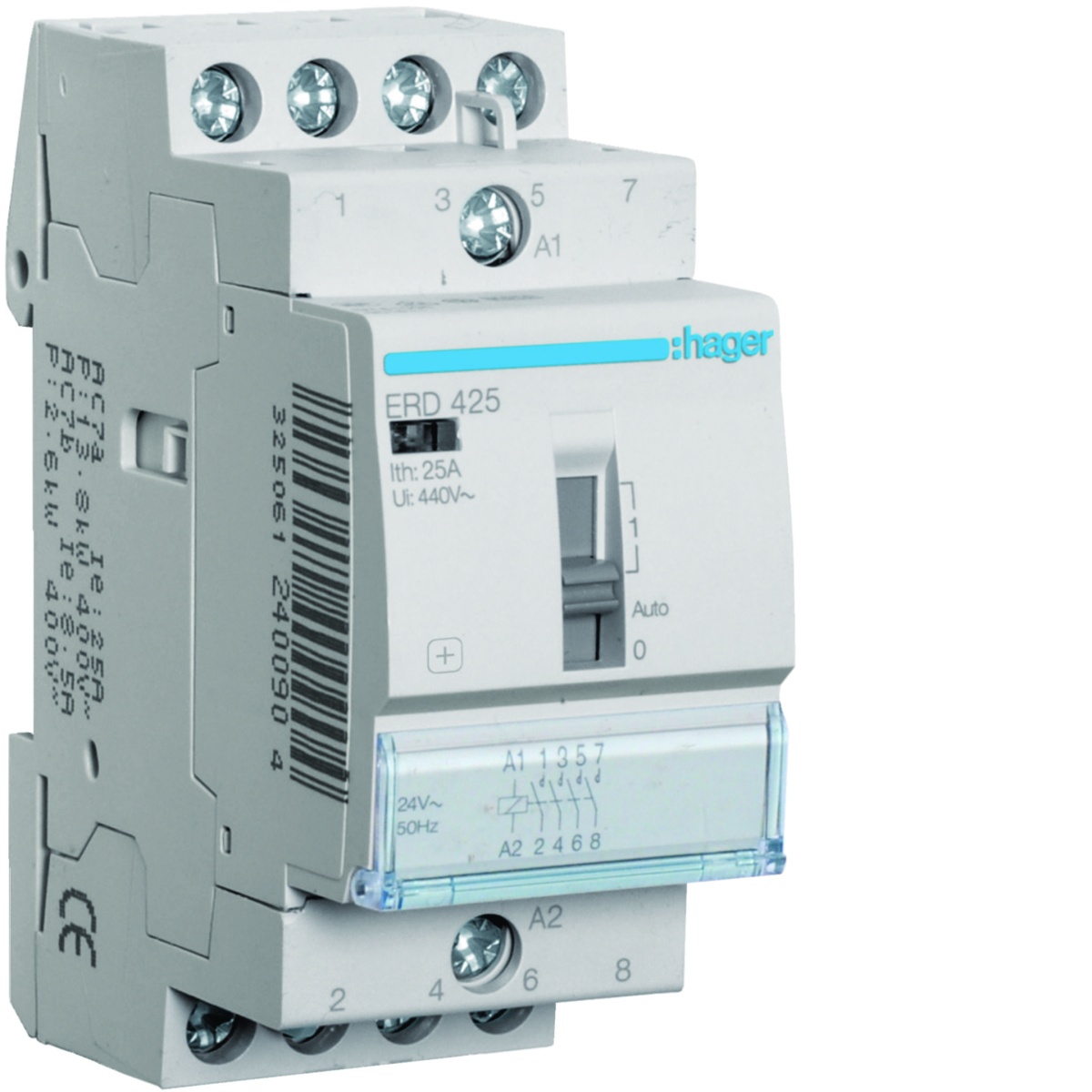 Contactor com comando manual 25A, 4NA, 24V 2 Módulos ERD425 é projetado para a gestão automática de equipamentos elétricos. Este permite o funcionamento em horários de menor consumo de aparelhos, especialmente os aquecedores de acumulação e os aquecedores elétricos, para otimizar o consumo de energia. Com estes produtos garante uma instalação confiável e segura para várias aplicações.