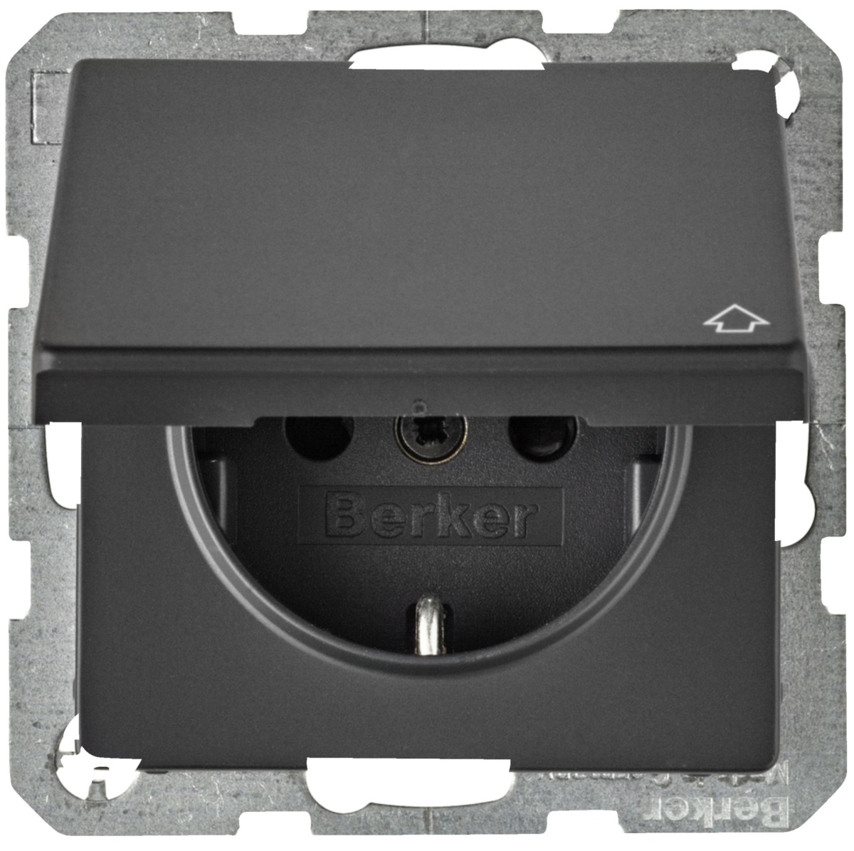 Tomada com tampa basculante e BS Q.x elevado anthracite, aveludado
