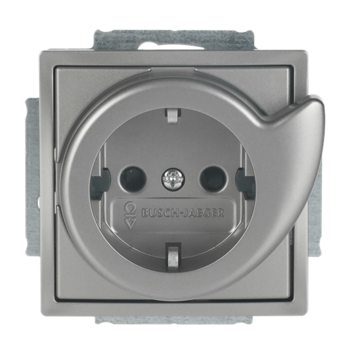 Busch-Service-Socket SCHUKO socket insert Safety Shutter stainless steel - Pure Stainless Steel
