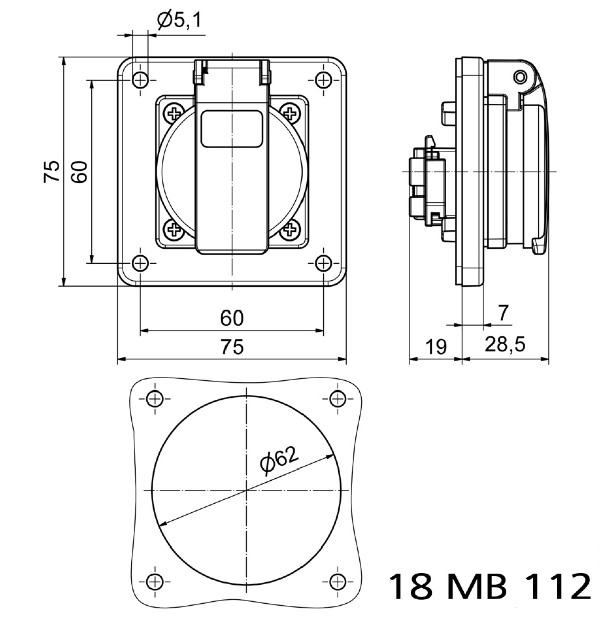 Domestic panel mounting socket outlet straight System F German standard 16A 3p 250V IP54