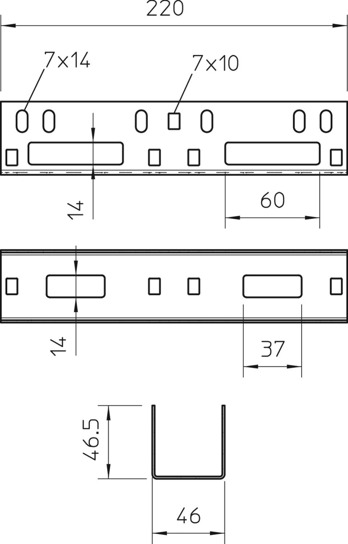 União reta e curva Ligação interna, para calha AZ 45x45x220 Aço galvanizado pelo método Sendzimir zinco