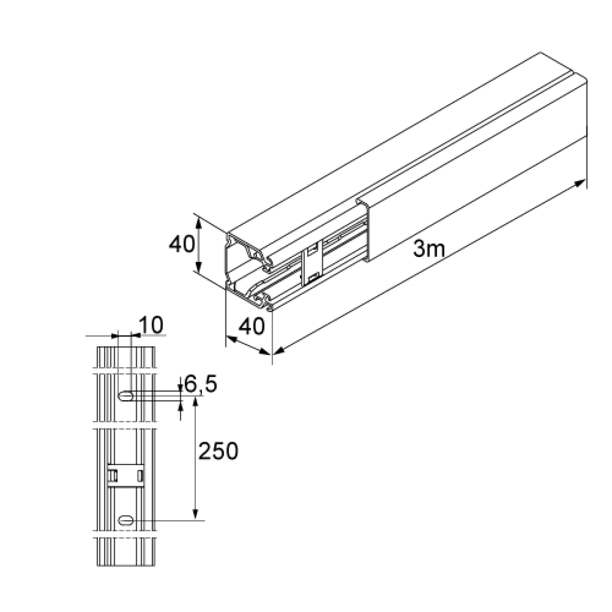 Calha para distribuição Unex 40x40, em U23X cor branco