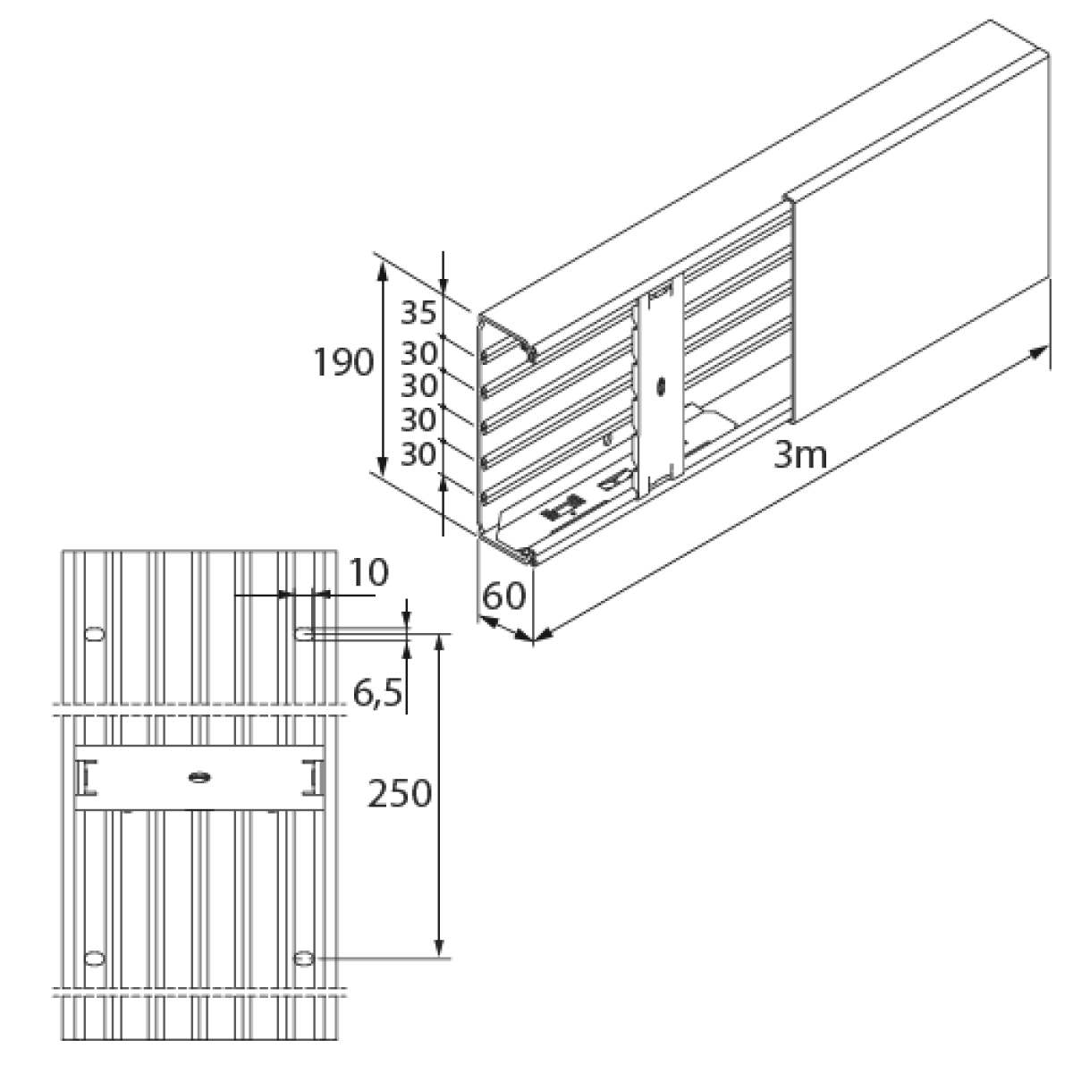 Calha para distribuição Unex 60x190, em U23X cor cinzento