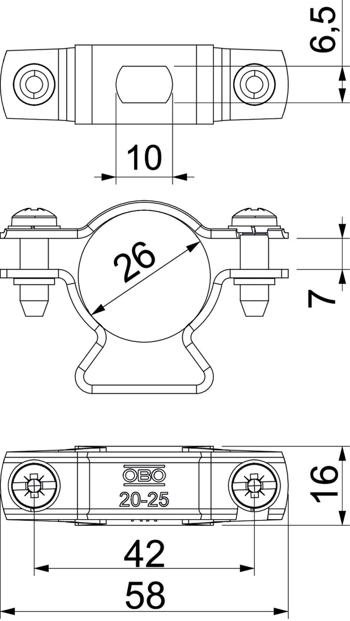 Abraçadeira para cabo isCon, cinzento Ø26mm Aço inoxidável, livre de ferrugem 1.4301 A2 1.4301
