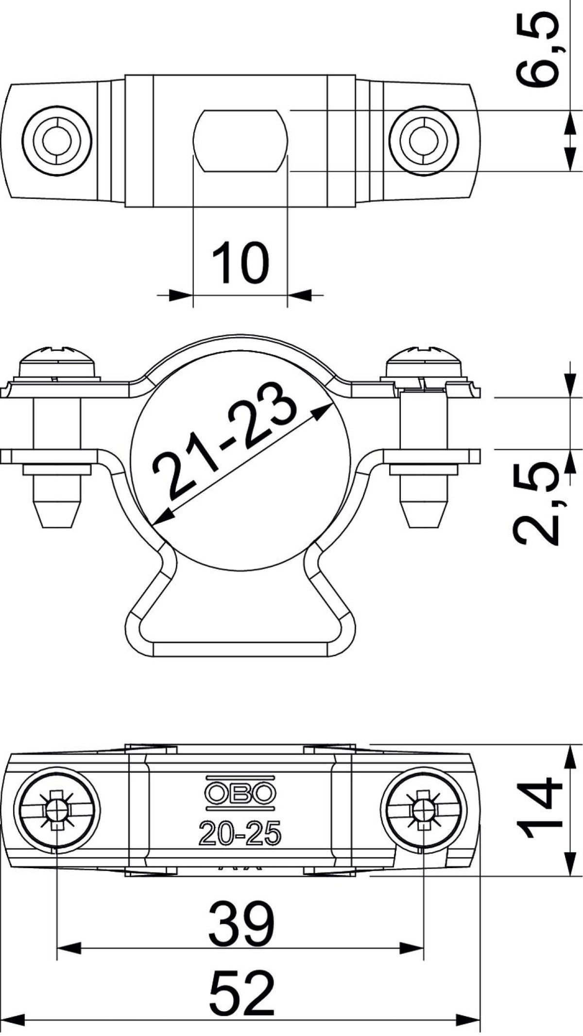 Abraçadeira para cabo isCon Ø23mm Aço inoxidável, livre de ferrugem 1.4301 A2 1.4301