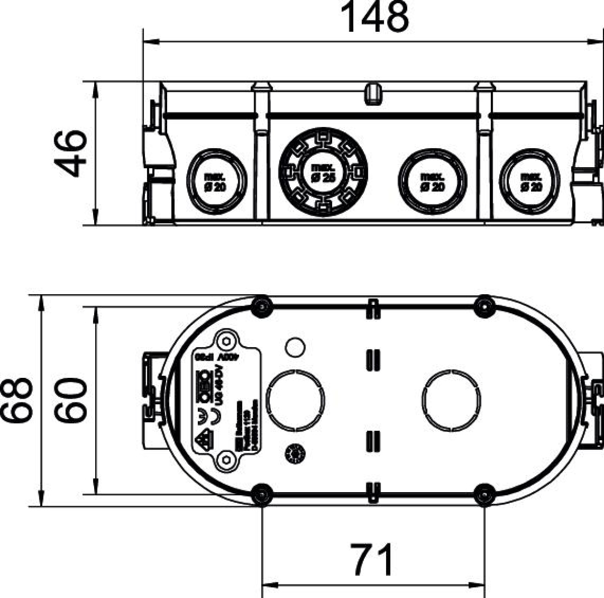 Caixa de aparelhagem UP versão dupla 2x Ø60xH46mm Polipropileno preto negro azul acinzentado