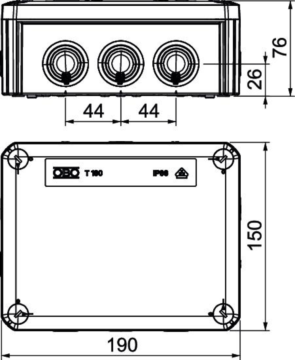 Caixa de derivação com entradas 10xM32 190x150x77 Polipropileno, reforçado a fibra de vidro cinzento claro RAL 7035
