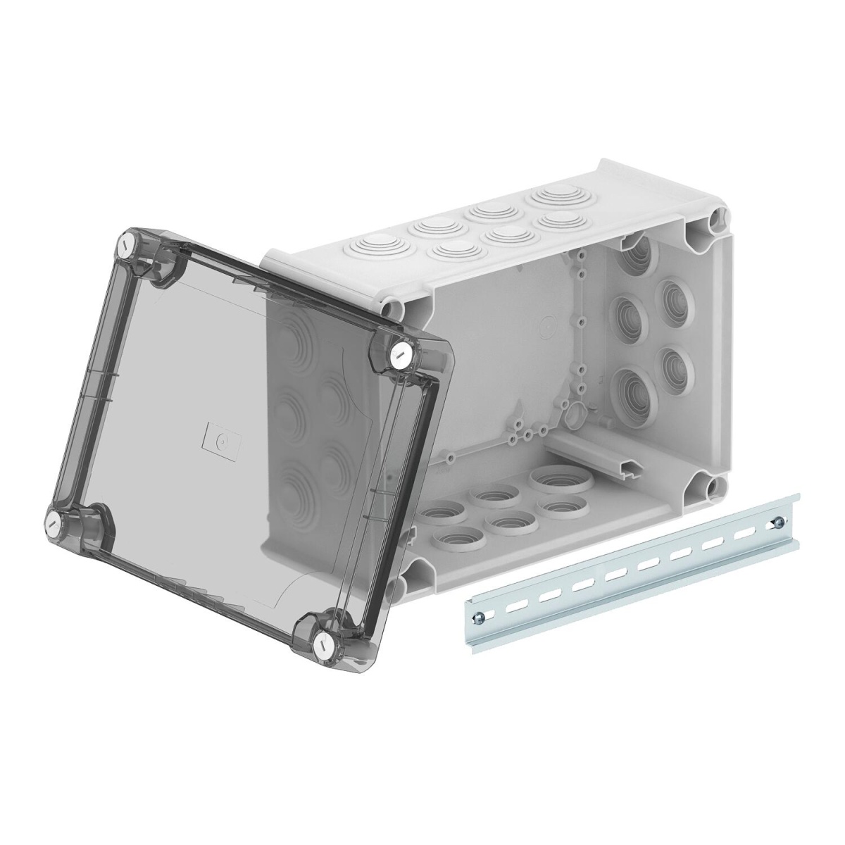 Caixa de derivação com tampa alta transparente 285x201x139 PolipropilenoPolicarbonato cinzento claro RAL 7035