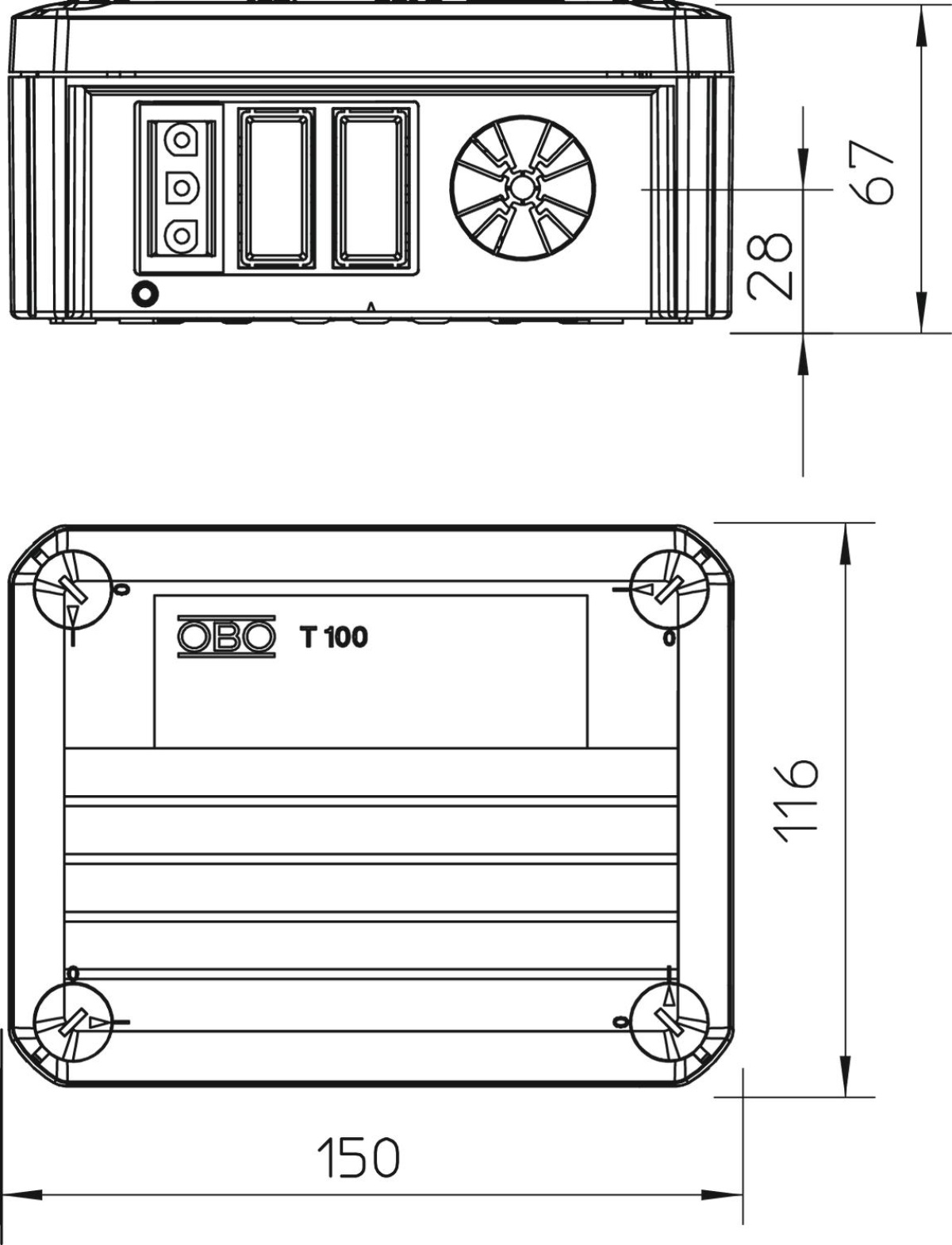 Caixa de derivação com Tomada Wieland 1w3p1s3p 150x116x67 Polipropileno cinzento claro RAL 7035