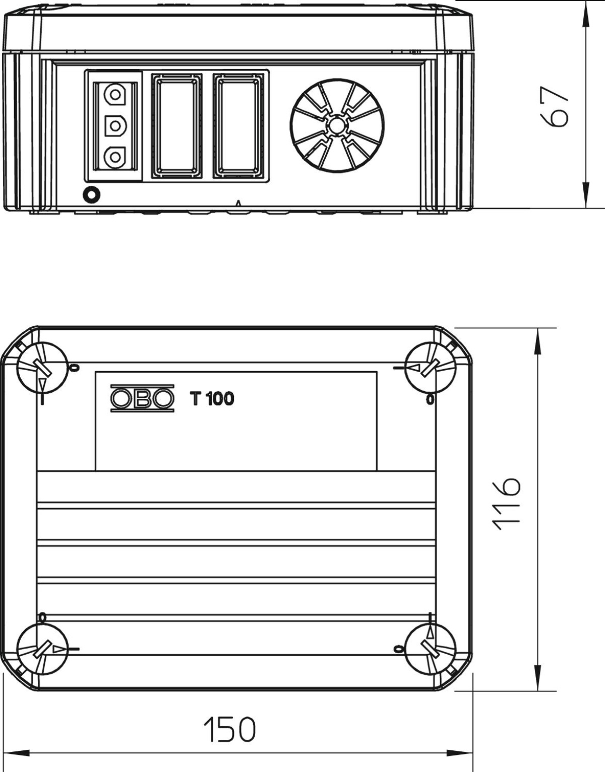 Caixa de derivação com Tomada Wieland 2s3p 150x116x67 Polipropileno cinzento claro RAL 7035