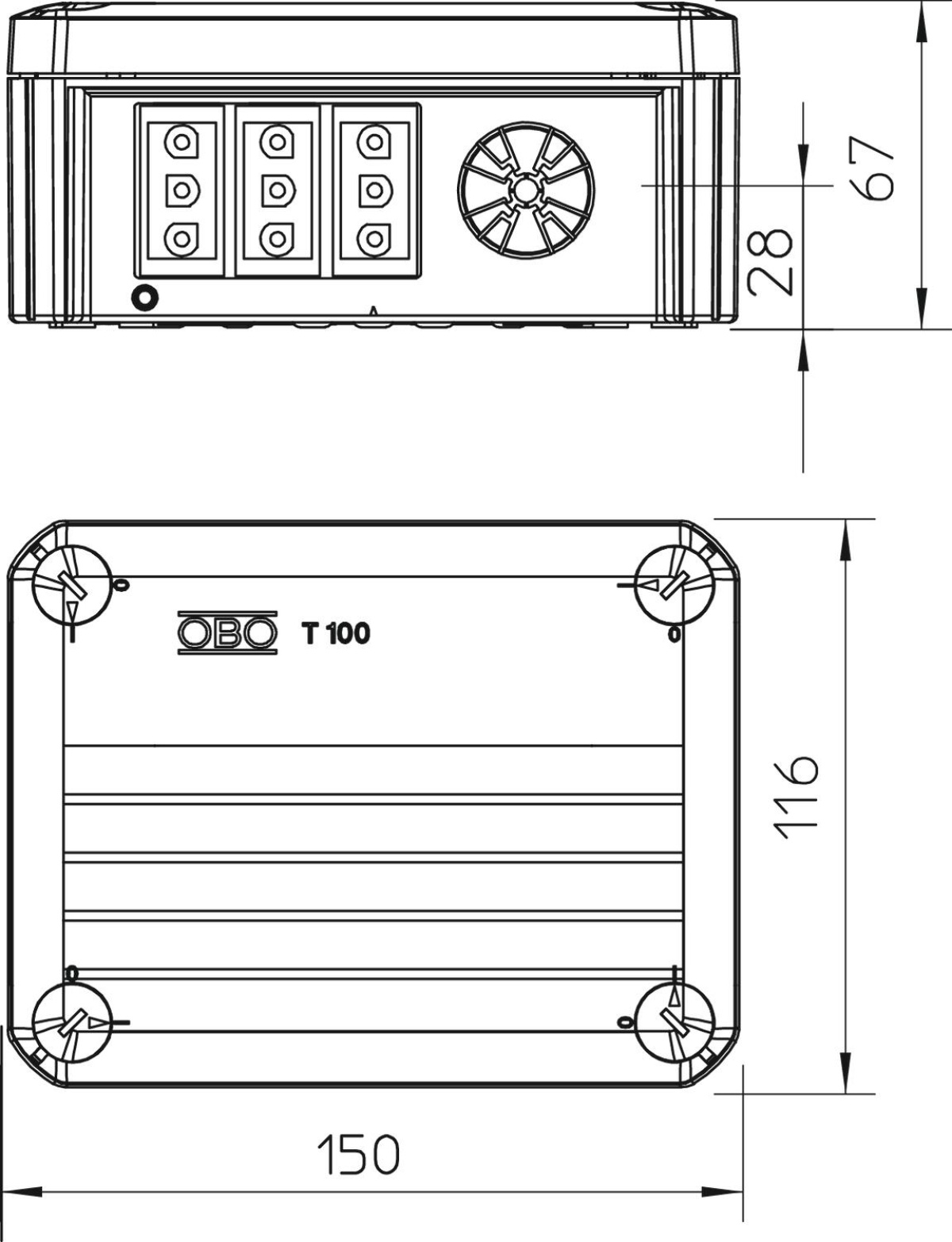 Caixa de derivação com tomadas Wieland 6s3p 3x2 150x116x67 Polipropileno cinzento claro RAL 7035