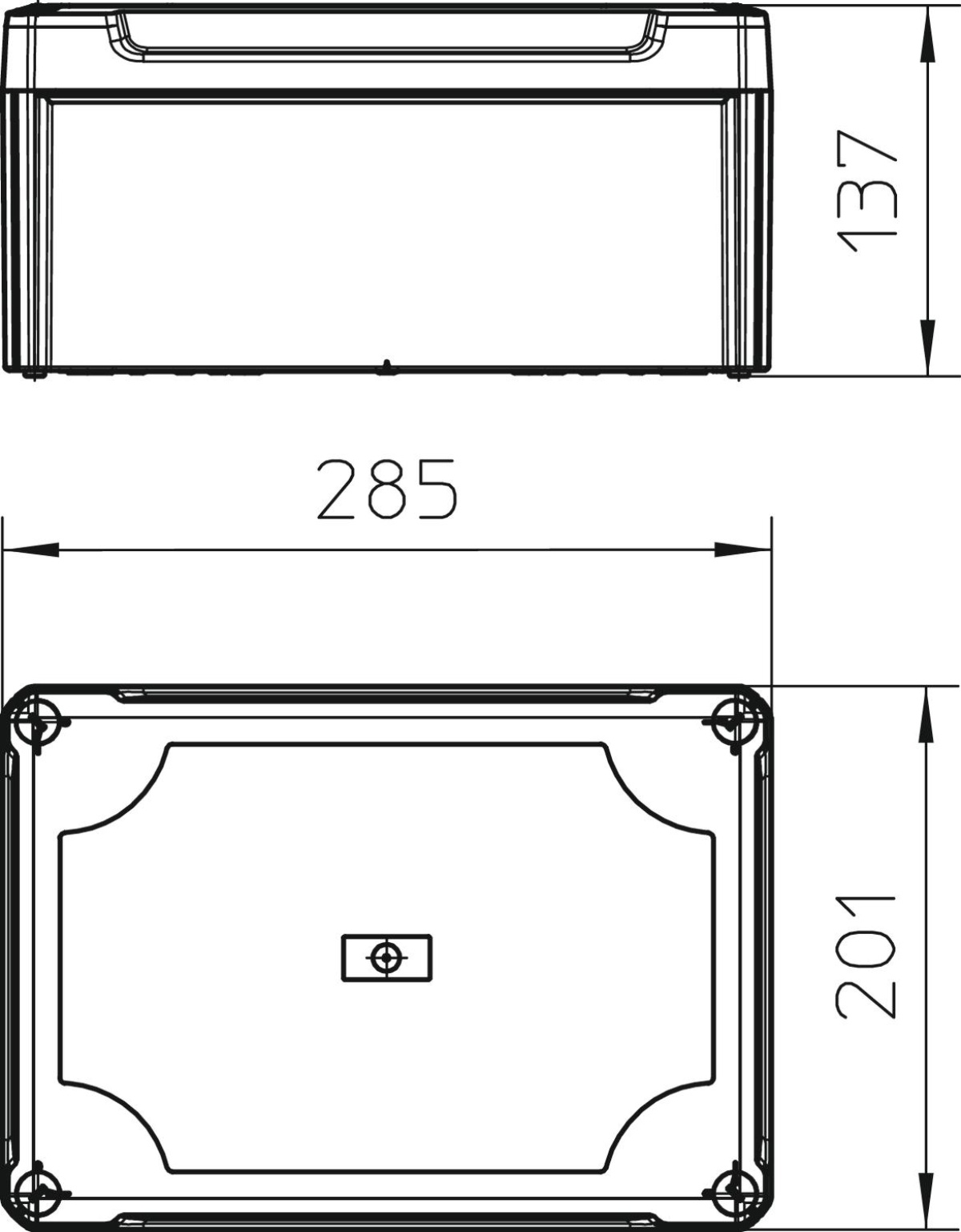 Caixa de derivação lisa com tampa alta 285x201x139 PolipropilenoPolicarbonato cinzento claro RAL 7035