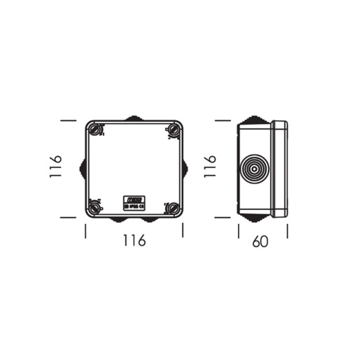 CAIXA DE DERIVAÇÃO SALIENTE 116x116x60 IP55 CINZENTA