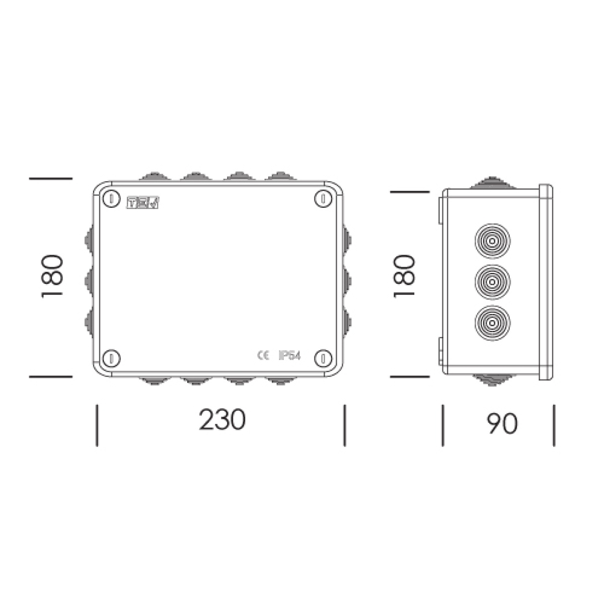 CAIXA DE DERIVAÇÃO SALIENTE 230x180x90 IP55 BRANCA