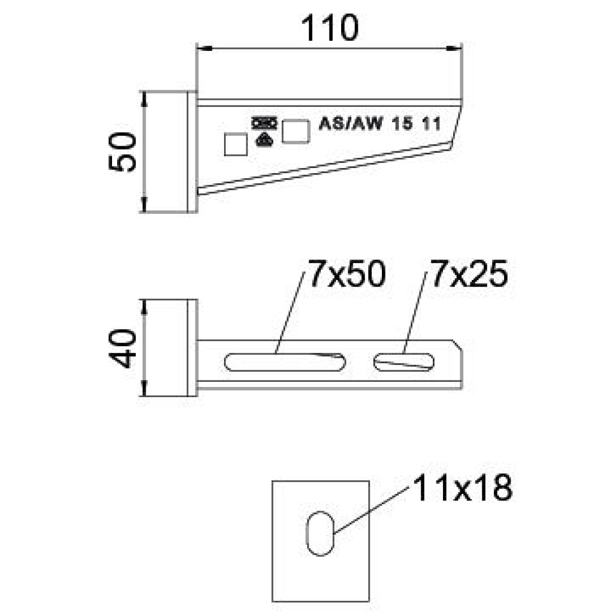 Consola mural com cabeça soldada B110mm Aço PES135 - Poliéster preto RAL 9005