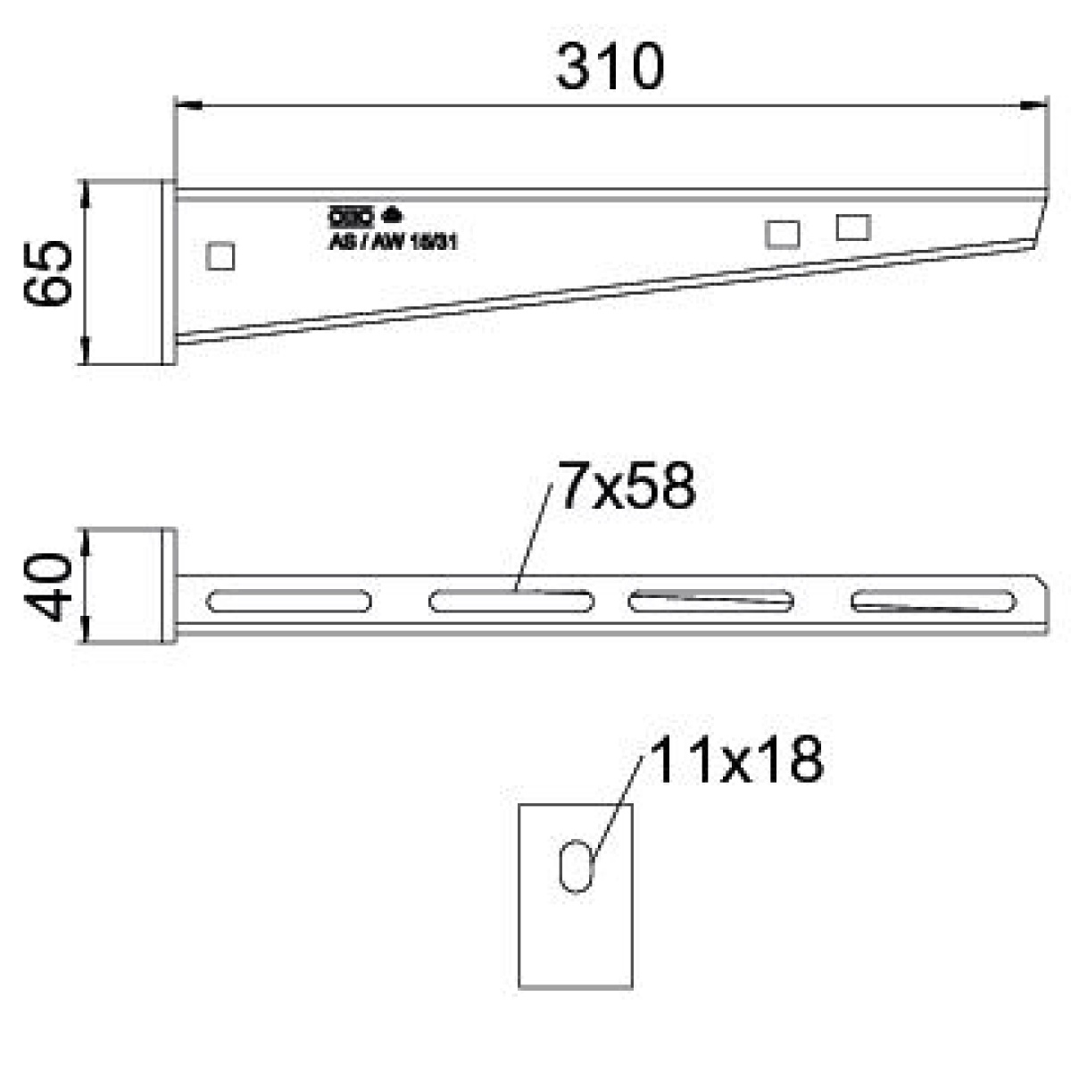 Consola para pequenas cargas com cabeça soldada. Revestimento preto.