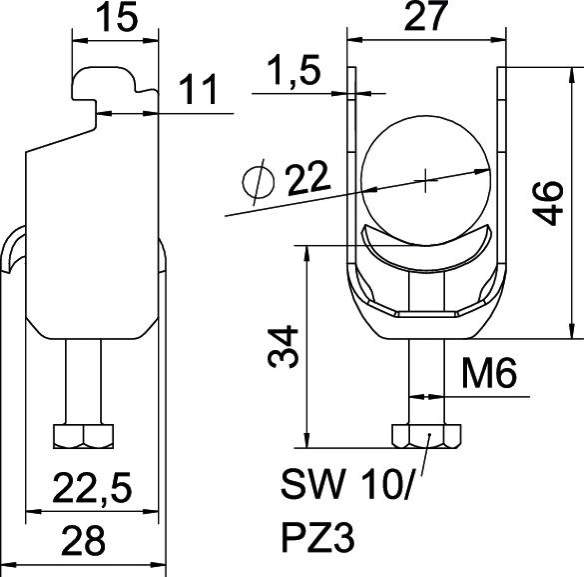 Abraçadeira BBS 2056 16-22mm Aço Galvanizado por imersão a quente após maquinação