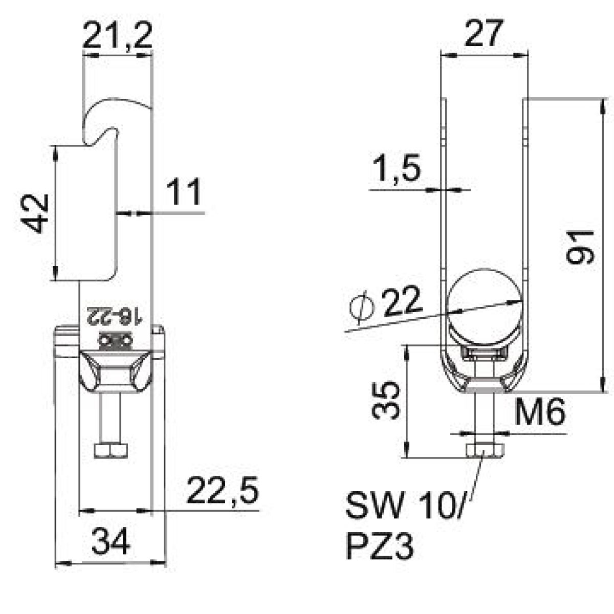 Abraçadeira BBS 2056 16-22mm Aço Galvanizado por imersão a quente após maquinação