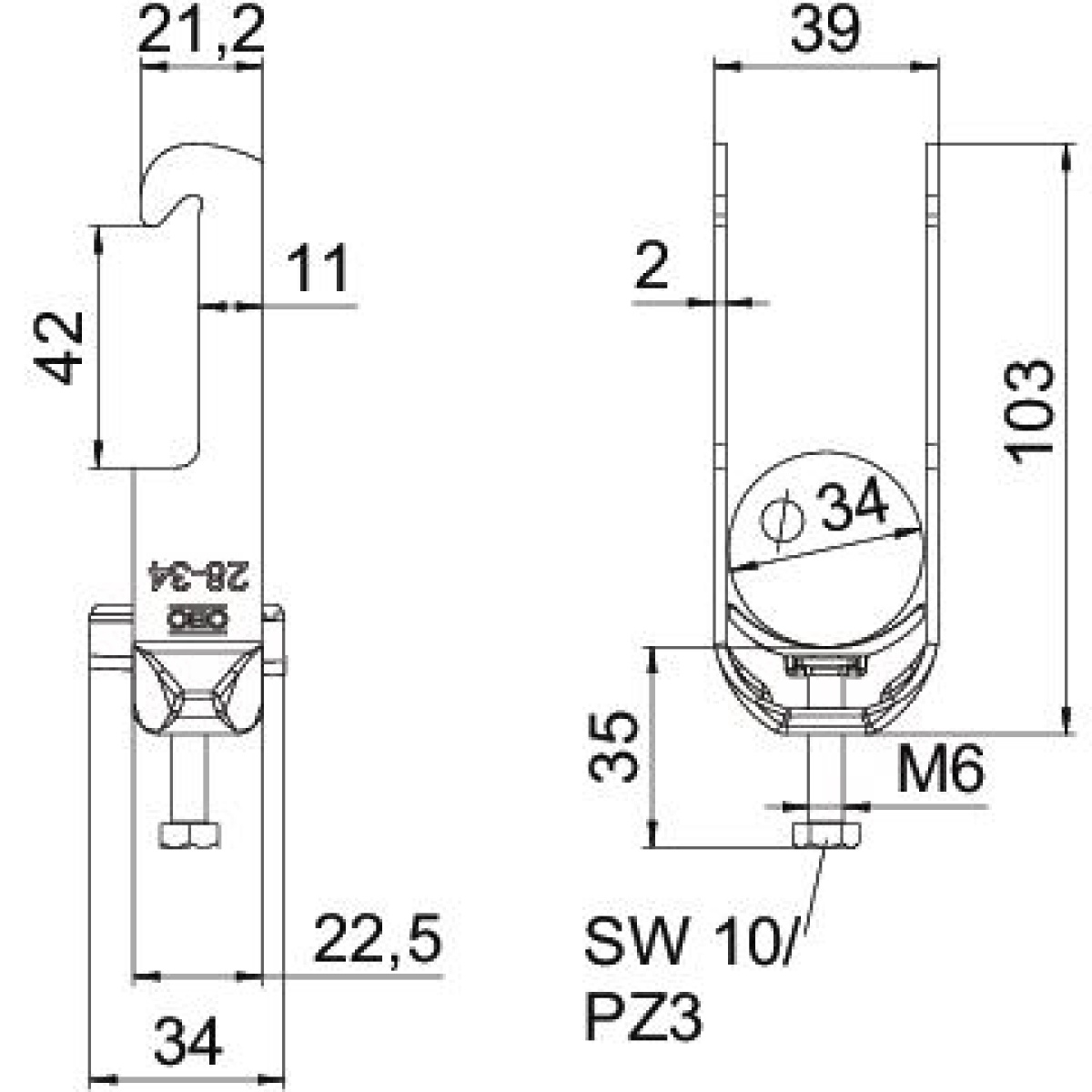 Abraçadeira BBS 2056 28-34mm Aço Galvanizado por imersão a quente após maquinação