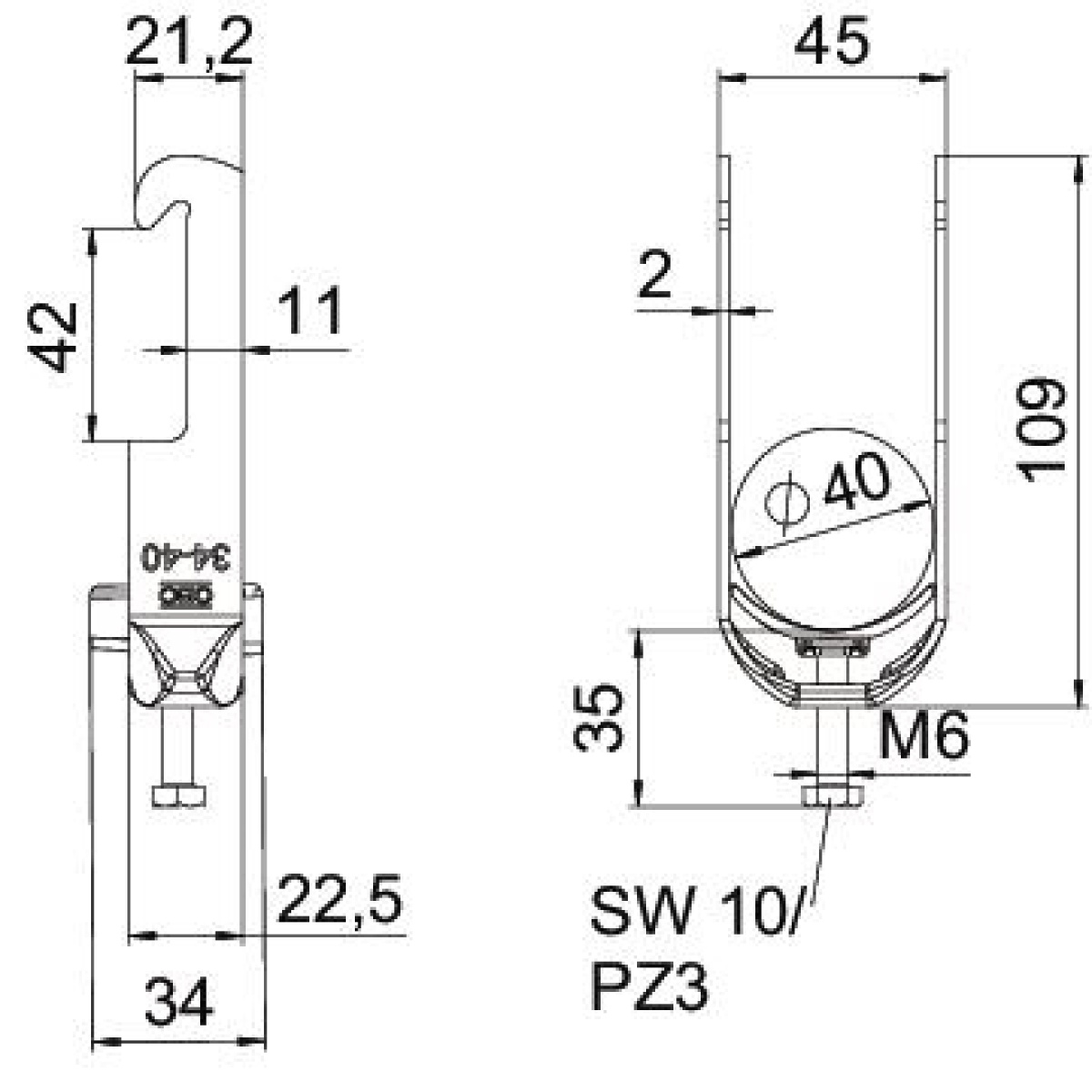 Abraçadeira BBS tipo W, placa de pressão em plástico de polipropileno. Para montagem vertical e horizontal de 1 cabo individual em ferros angulares até < 40 mm. Com parafuso simples na placa de pressão, cabeça de parafuso hexagonal universal tam. 10, com fenda e fenda em cruz. Adequado para montagem em áreas interiores e exteriores. Recomenda-se o uso de uma contraplaca.