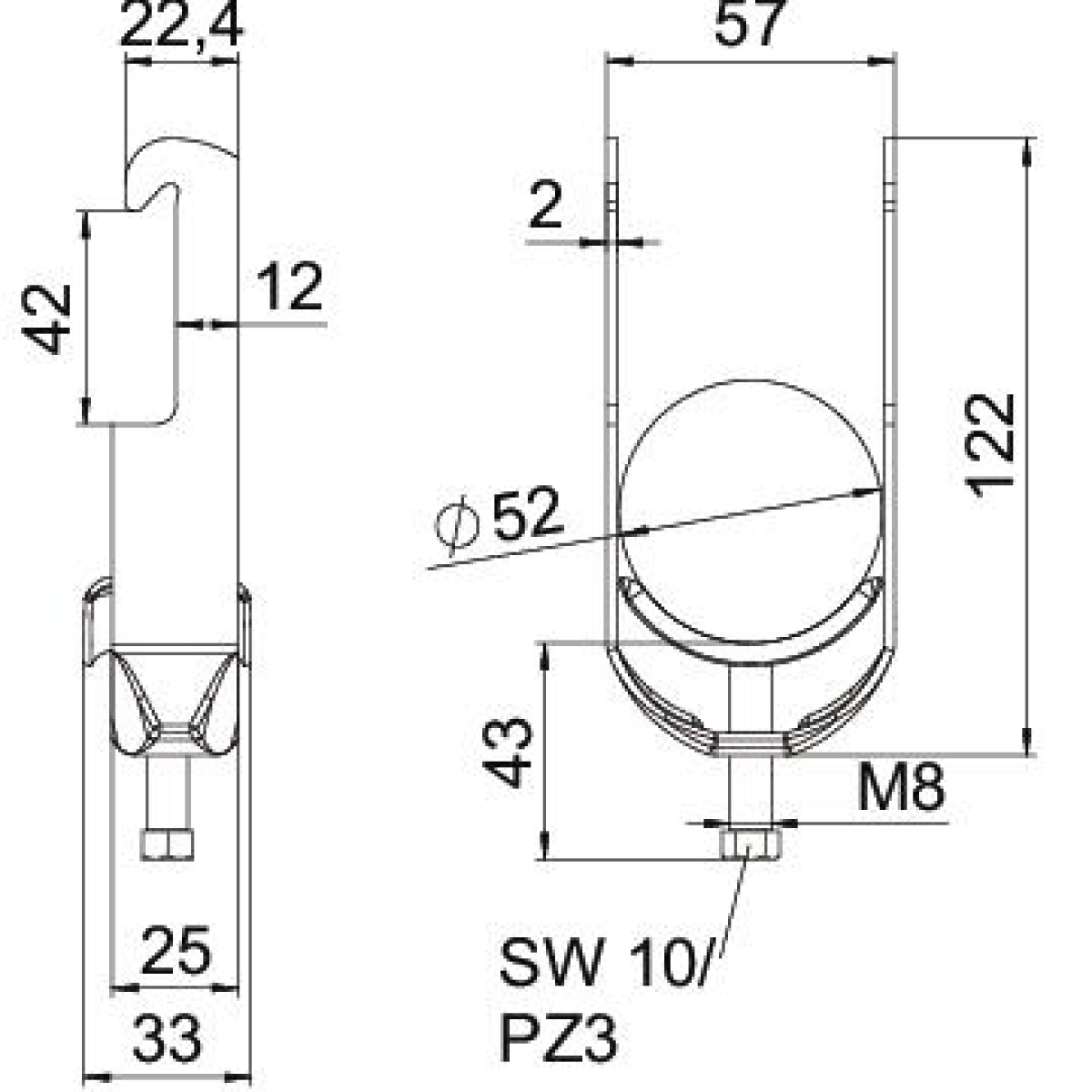 Abraçadeira BBS 2056 46-52mm Aço Galvanizado por imersão a quente após maquinação