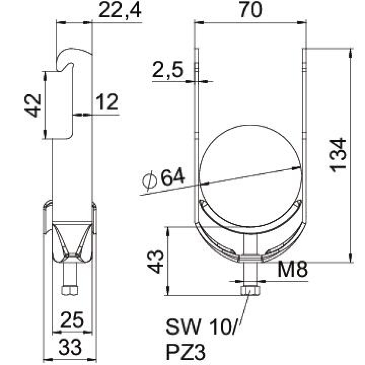 Abraçadeira BBS com tipo W, placa de pressão metálica com arestas arredondadas para proteção de cabos. Para montagem vertical e horizontal de 1 cabo individual em ferros angulares até < 40 mm. Com parafuso simples na placa de pressão, cabeça de parafuso hexagonal universal tam. 10, com fenda e fenda em cruz. Adequado para montagem em áreas interiores e exteriores. Recomenda-se o uso de uma contraplaca.
