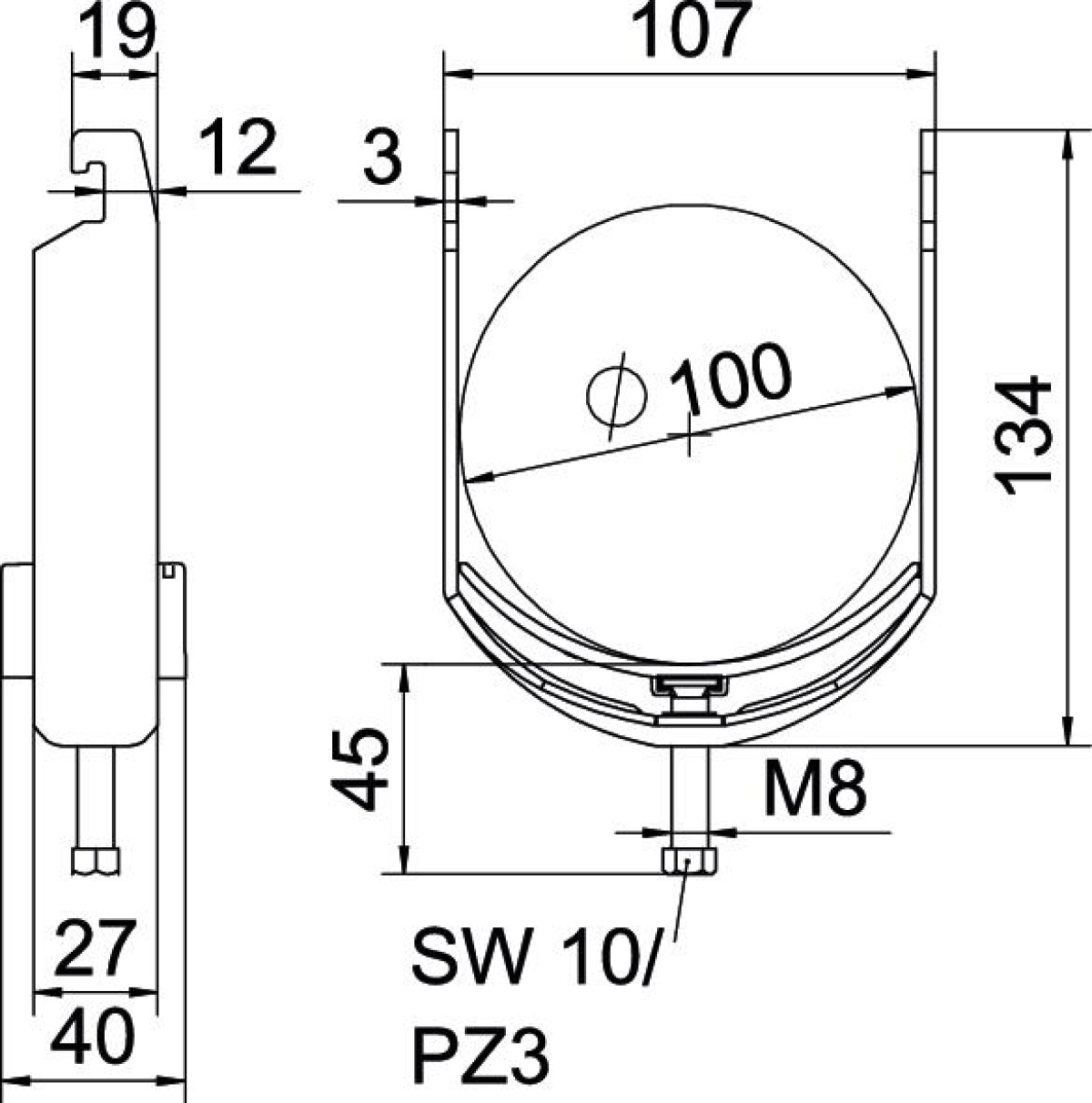 Abraçadeira BBS tipo U, placa de pressão em plástico de polipropileno. Para montagem vertical e horizontal de 1 cabo individual em perfil C. Para largura de rasgo 18 - 22 mm. Com parafuso simples na placa de pressão, cabeça de parafuso hexagonal universal tam. 10, com fenda e fenda em cruz. Adequado para montagem em áreas interiores e exteriores. Recomenda-se o uso de uma contraplaca.