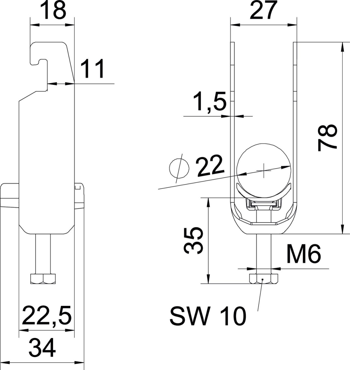 Abraçadeira BBS tipo U, placa de pressão em plástico de polipropileno. Para montagem vertical e horizontal de 2 cabos individuais em perfil C. Para largura de rasgo 18 - 22 mm. Com parafuso simples na placa de pressão, cabeça de parafuso hexagonal universal tam. 10, com fenda e fenda em cruz. Adequado para montagem em áreas interiores e exteriores.. Vários cabos devem ser separados por placas duplas. Recomenda-se o uso de uma contraplaca.