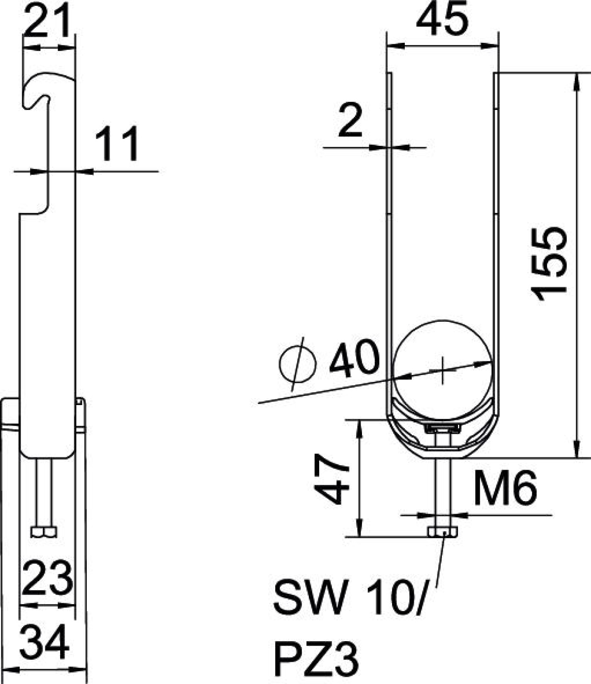 Abraçadeira BBS tipo W, placa de pressão em plástico de polipropileno. Para montagem vertical e horizontal de 2 cabos individuais em ferros angulares até < 40 mm. Com parafuso simples na placa de pressão, cabeça de parafuso hexagonal universal tam. 10, com fenda e fenda em cruz. Adequado para montagem em áreas interiores e exteriores. Vários cabos devem ser separados por placas duplas. Recomenda-se o uso de uma contraplaca.