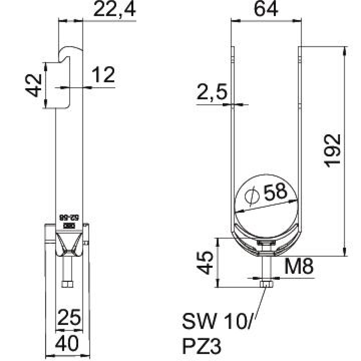 Abraçadeira BBS 2056 dupla 52-58mm Aço Galvanizado por imersão a quente após maquinação