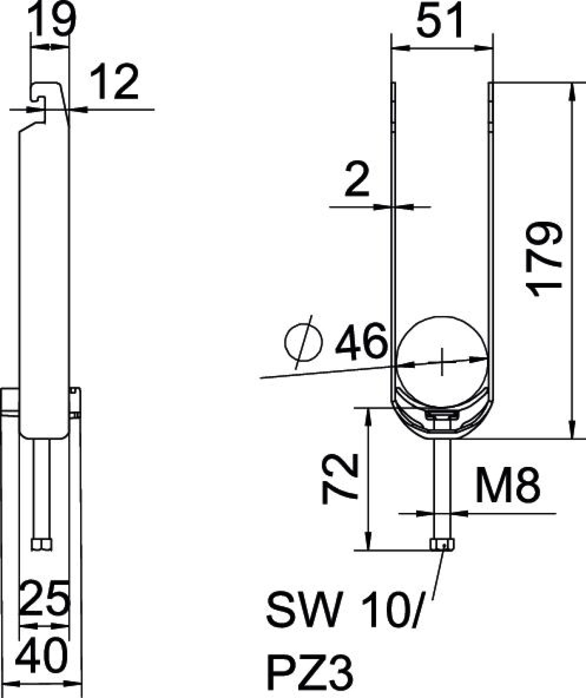 Abraçadeira BBS tipo U, placa de pressão em plástico de polipropileno. Para montagem vertical e horizontal de 3 cabos individuais em perfil C. Para largura de rasgo 18 mm ou 22 mm. Com parafuso simples na placa de pressão, cabeça de parafuso hexagonal universal tam. 10, com fenda e fenda em cruz. Adequado para montagem em áreas interiores e exteriores.. Vários cabos devem ser separados por placas duplas. Recomenda-se o uso de uma contraplaca.