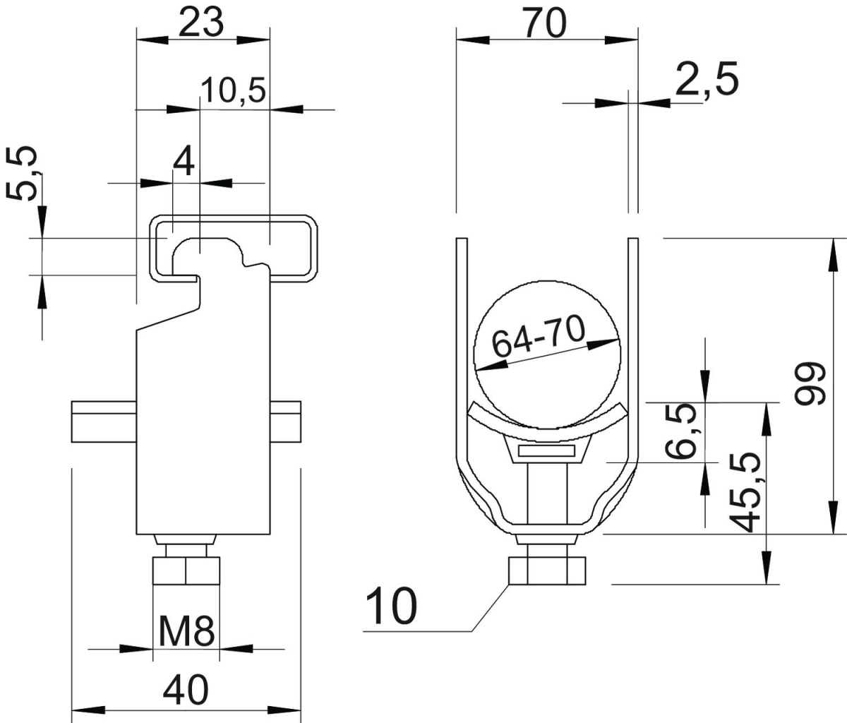 Adequada para todos os perfis C com 11-12 mm de largura de rasgo, pelo menos 6,5 mm de altura interior e pelo menos 18,5 mm de largura interior. Abraçadeira e parafuso em aço galvanizado a quente após maquinação. Placa em polipropileno, cinzento claro RAL 7035, livre de halogéneos.