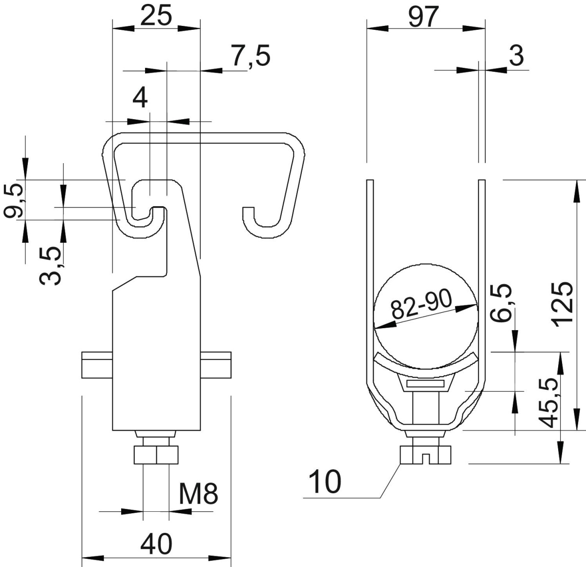 Abraçadeira BBS 82-90mm Aço Galvanizado por imersão a quente após maquinação