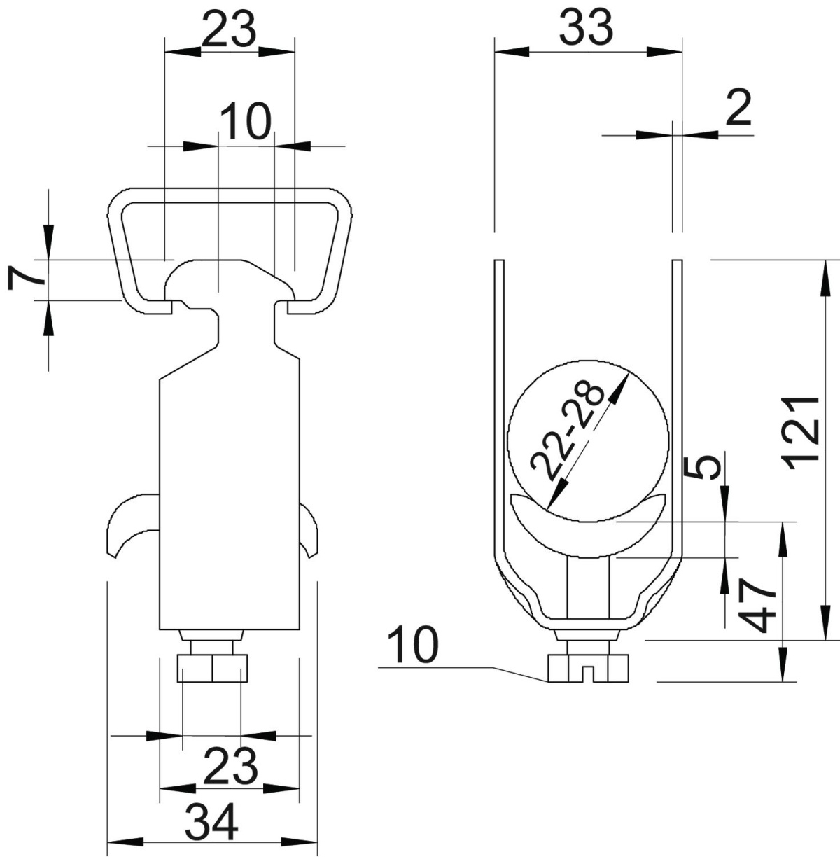 Abraçadeira BBS com placa de pressão metálica, tripla 22-28mm