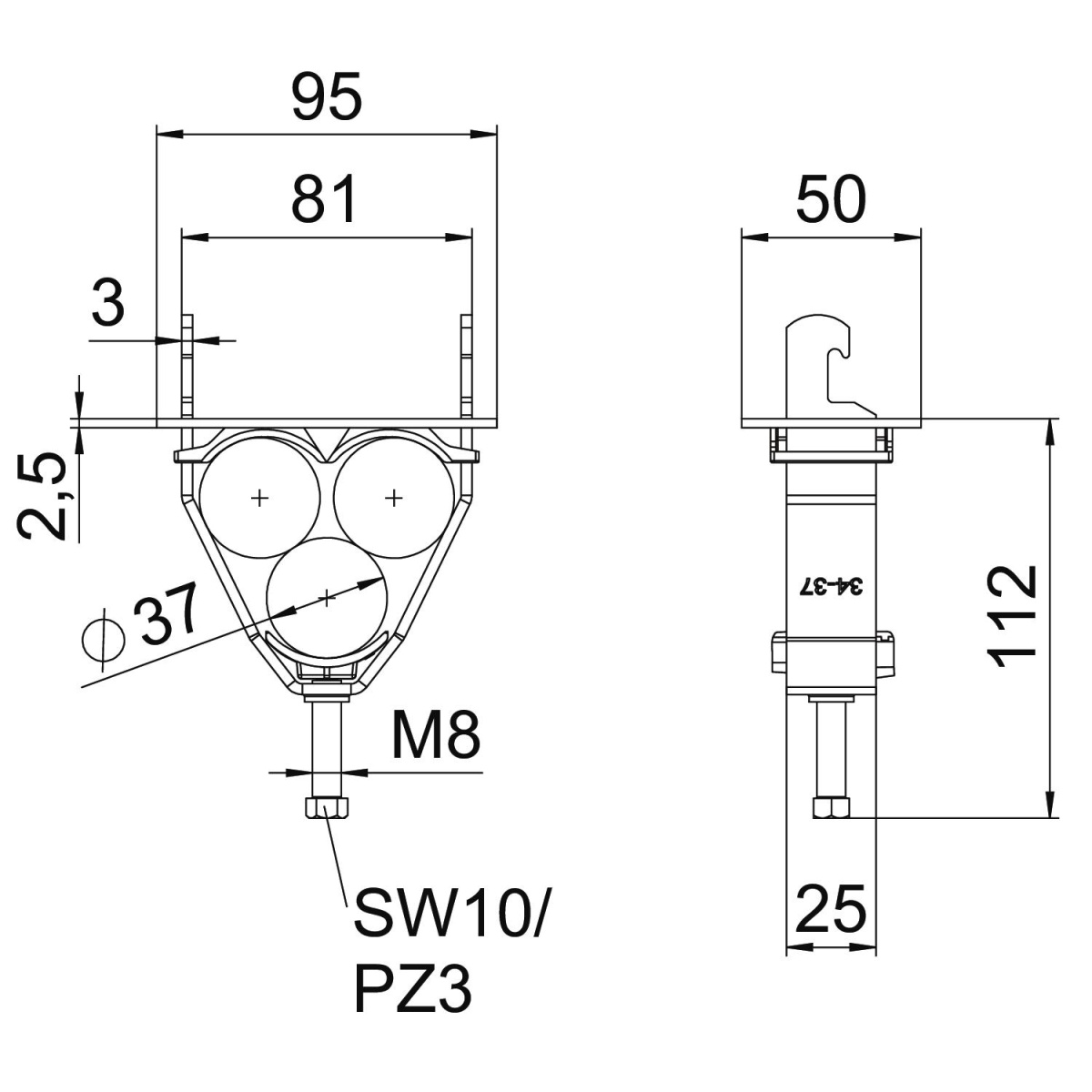 Abraçadeira BBS para 3 cabos 34-37mm Aço Galvanizado por imersão a quente após maquinação