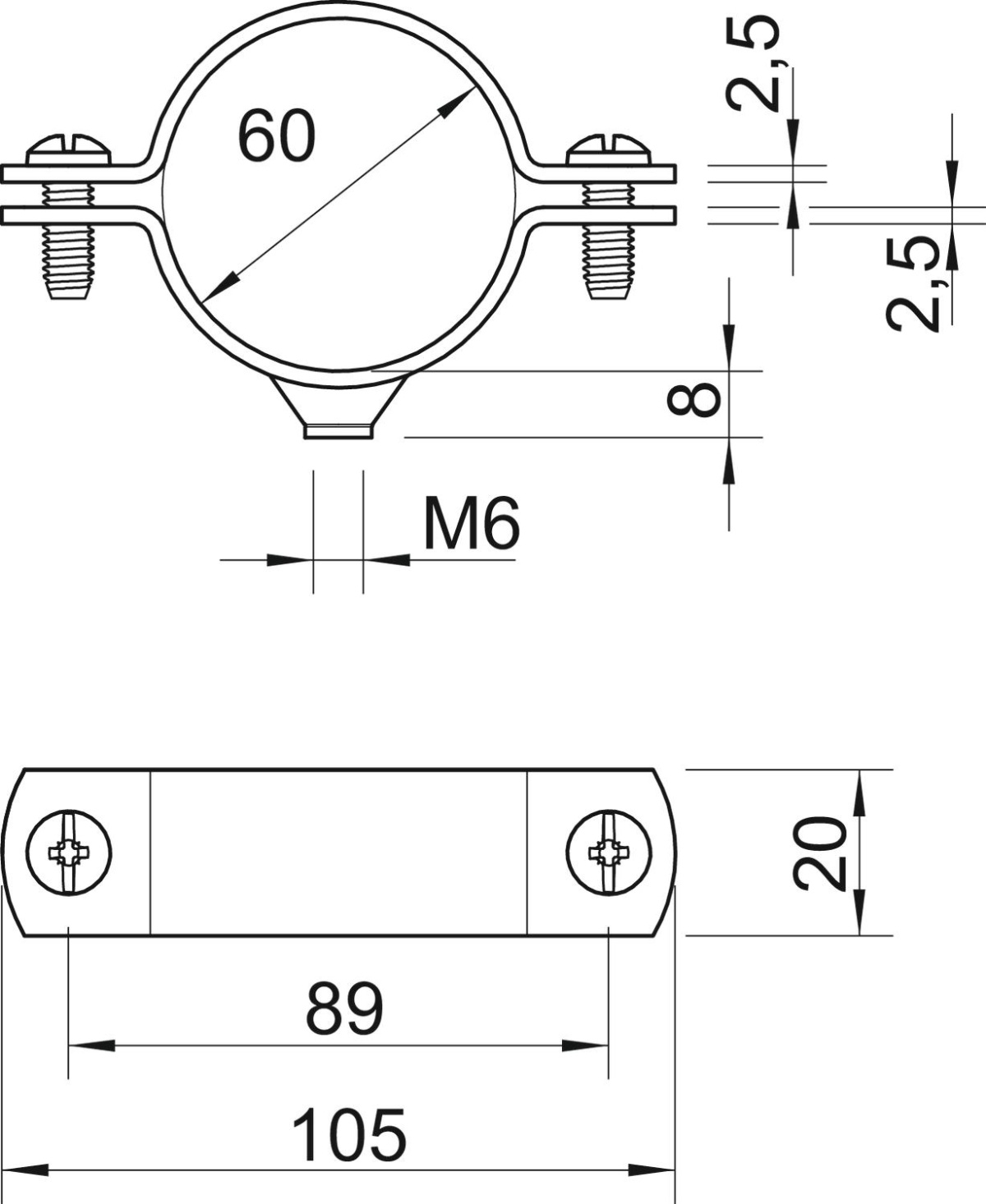 Abraçadeira metálica com rosca M6 2" Aço Galvanizado por imersão a quente após maquinação