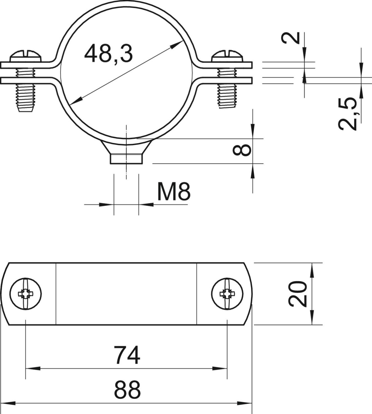 Abraçadeira metálica com rosca M8 1 12" Aço Galvanizado por imersão a quente após maquinação