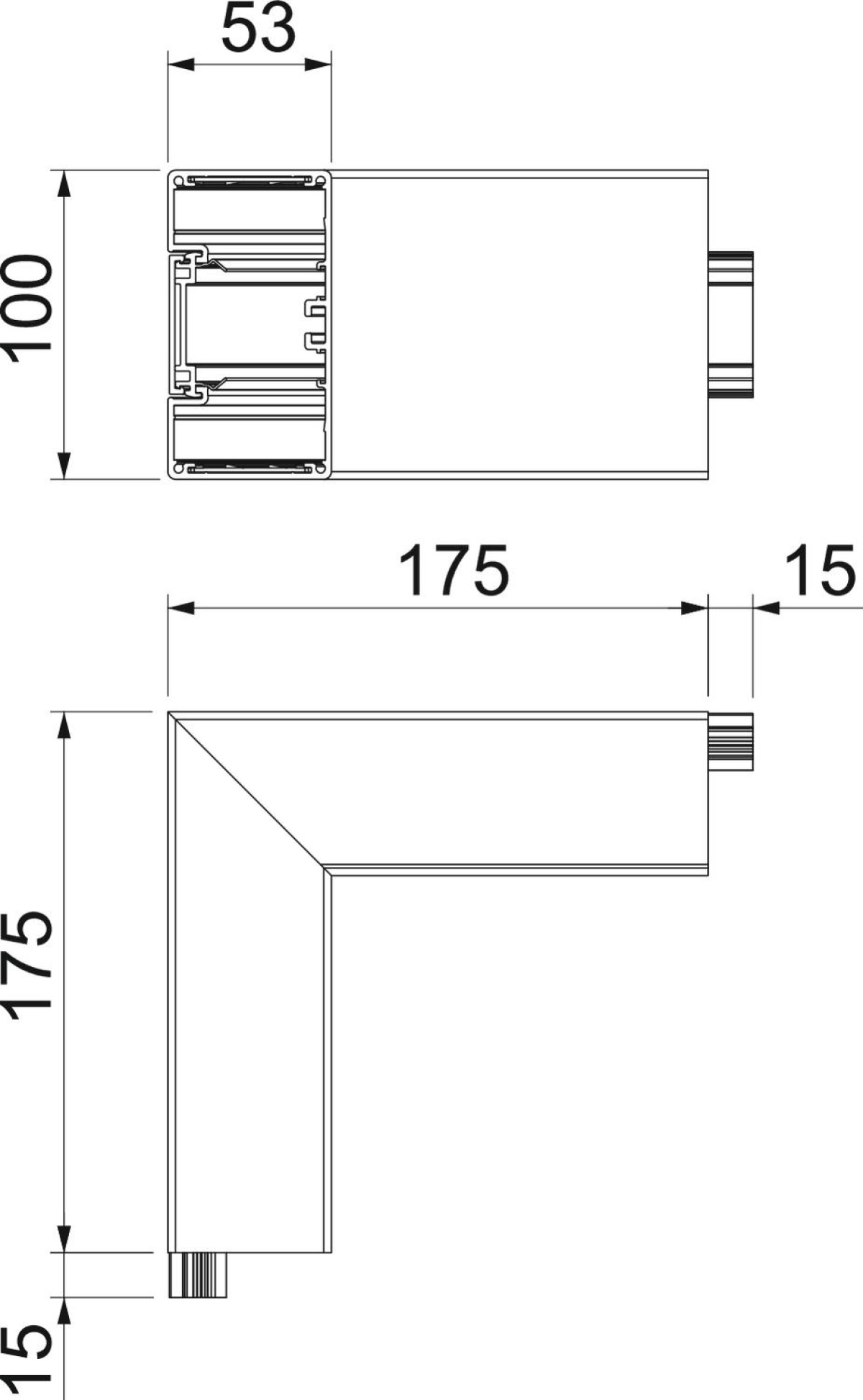 Ângulo externo Alumínio, rígido 53x100x175 Alumínio branco puro RAL 9010