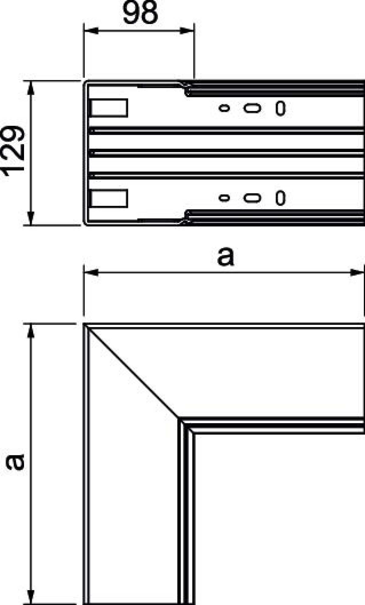 Ângulo interno 250x130x100 Policloreto de vinilo branco puro RAL 9010