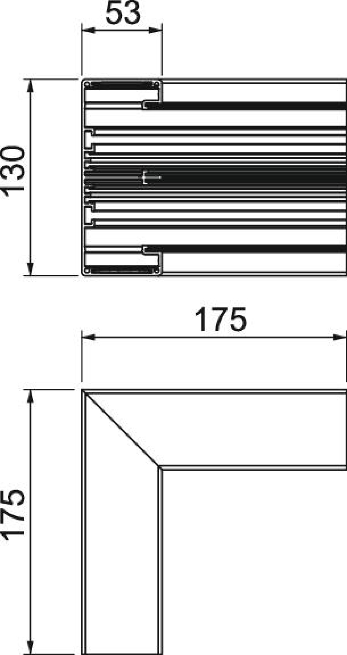 Ângulo interno Alumínio, rígido 53x130x175 Alumínio branco puro RAL 9010
