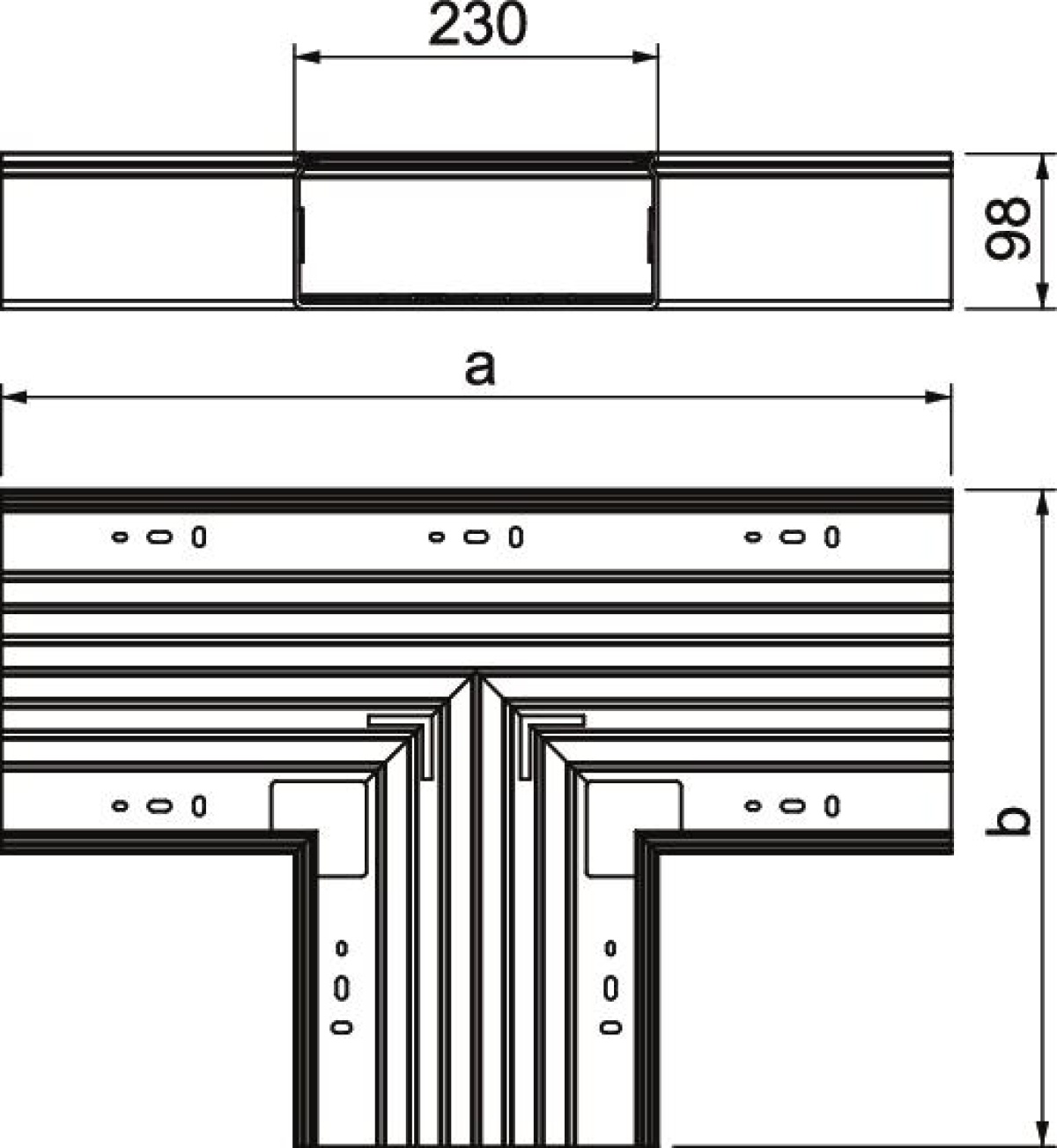 Derivação em T 600x230x100 Policloreto de vinilo branco puro RAL 9010