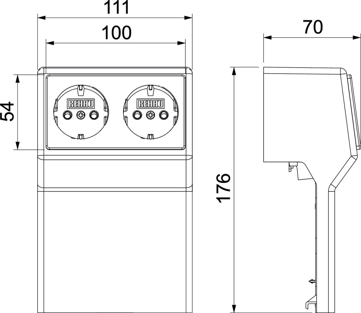 Caixa de aparelhagem com tomada Schuko dupla para o sistema de calhas Rauduo.