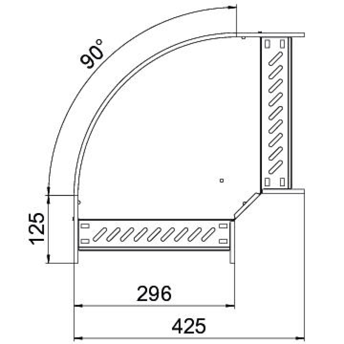 Ângulo 90º para caminho cabos, horizontal 60x300 Aço PES135 - Poliéster preto RAL 9005