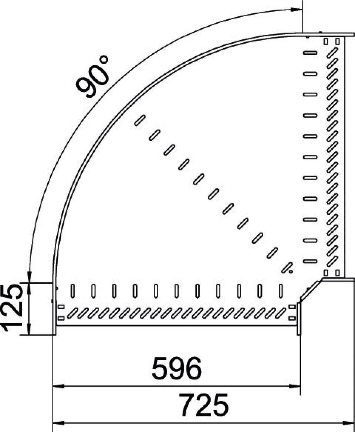 Ângulo 90º para caminho cabos, horizontal 85x600 Aço galvanizado pelo método Sendzimir zinco