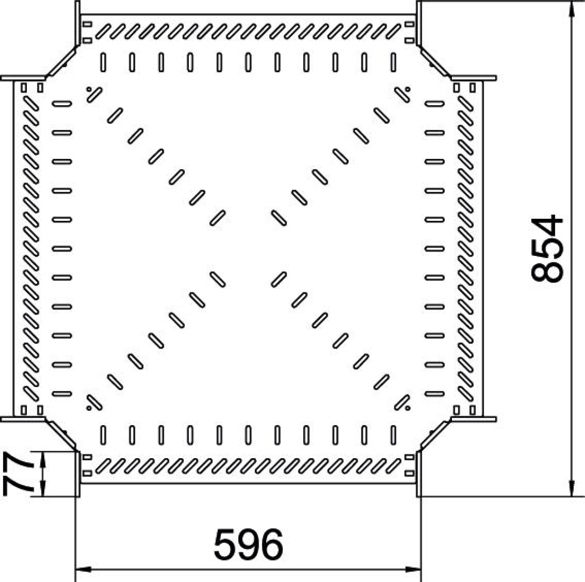 Cruzeta para a criação de um ramal horizontal, para caminhos de cabos em chapa de encaixe e de aparafusar, altura lateral de 110 mm. Montagem sem parafusos com grampos duplos ou ligação roscada com parafusos de cabeça boleada FRS e porcas combinadas M6. Indicado para áreas interiores e exteriores. O material de fixação terá que ser encomendado em separado.