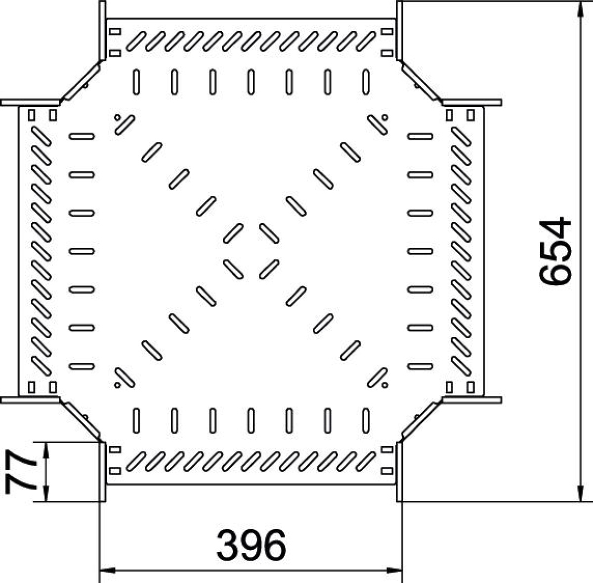 Cruzeta para a criação de um ramal horizontal, para caminhos de cabos em chapa de encaixe e de aparafusar, altura lateral de 85 mm. Montagem sem parafusos com grampos duplos ou ligação roscada com parafusos de cabeça boleada FRS e porcas combinadas M6. Indicado para áreas interiores e exteriores. O material de fixação terá que ser encomendado em separado.