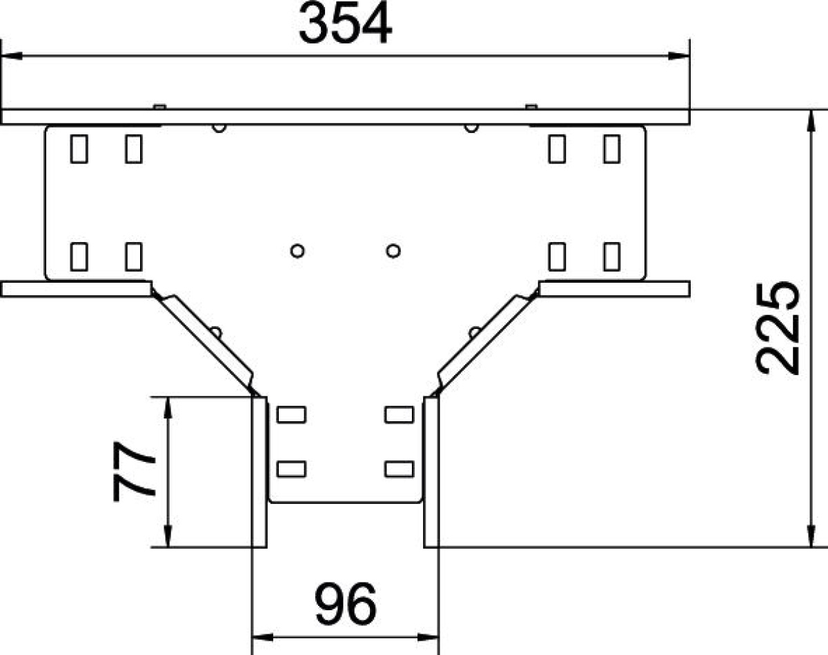 Derivação em T para a criação de um ramal horizontal, para caminhos de cabos em chapa de encaixe e de aparafusar, altura lateral de 60 mm. Montagem sem parafusos com grampos duplos ou ligação roscada com parafusos de cabeça boleada FRS e porcas combinadas M6. Aplicável em áreas interiores. O material de fixação terá que ser encomendado em separado.