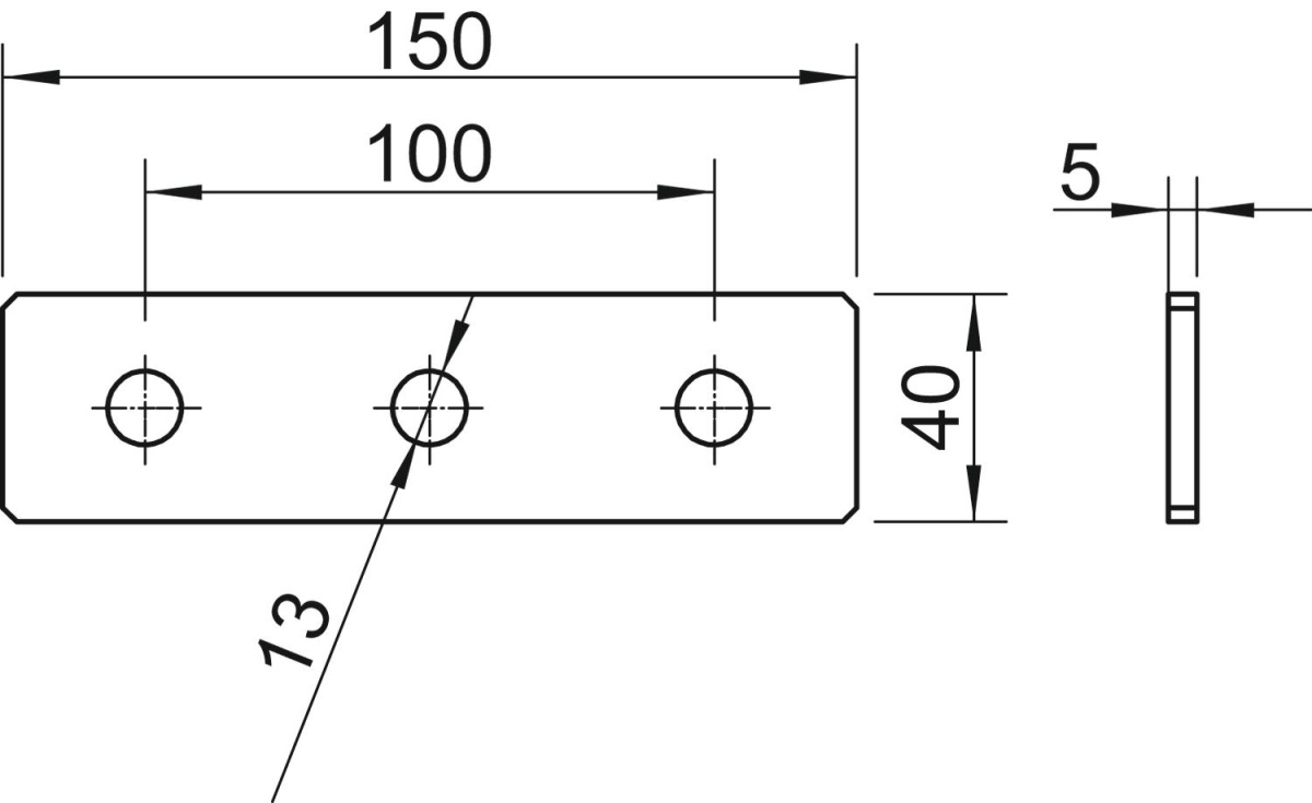 Placa de união com 3 orifícios 150x40x5 Aço Galvanizado por imersão a quente após maquinação