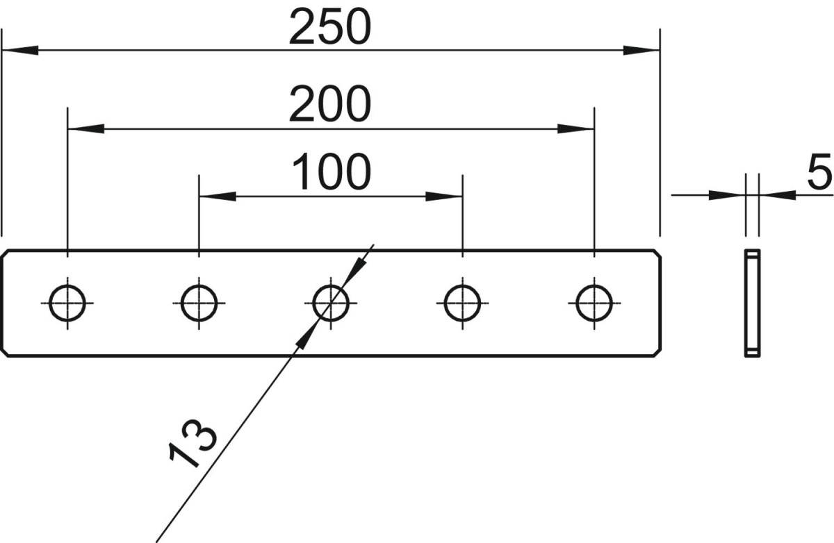 Placa de união com 5 orifícios para a ligação longitudinal de perfis de 41 x 41 mm e 41 x 21 mm.